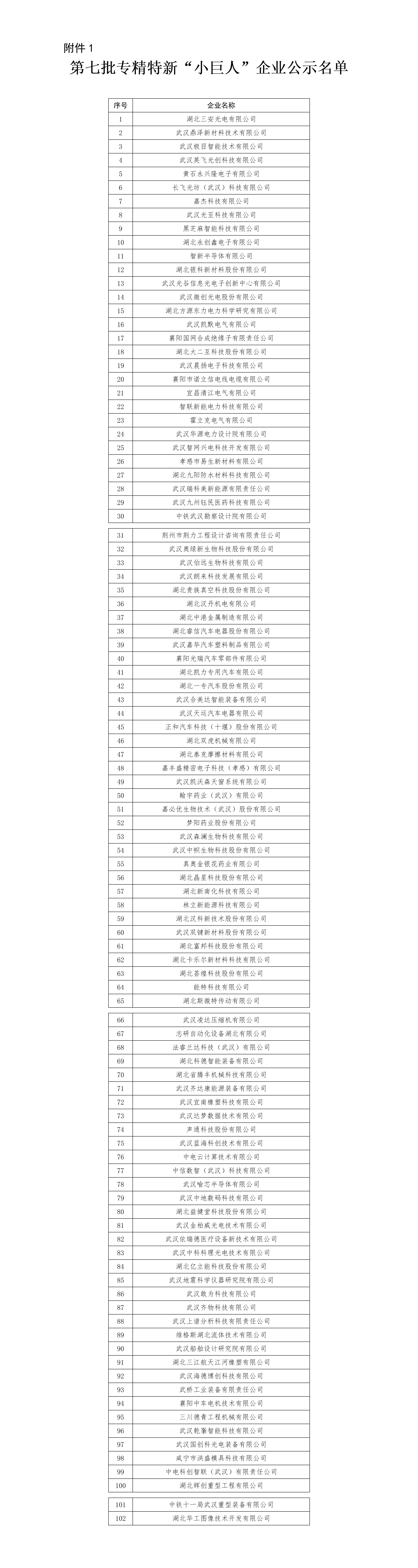 湖北省第七批专精特新“小巨人”企业和2025年专精特新“小巨人”复核通过企业名单的公示