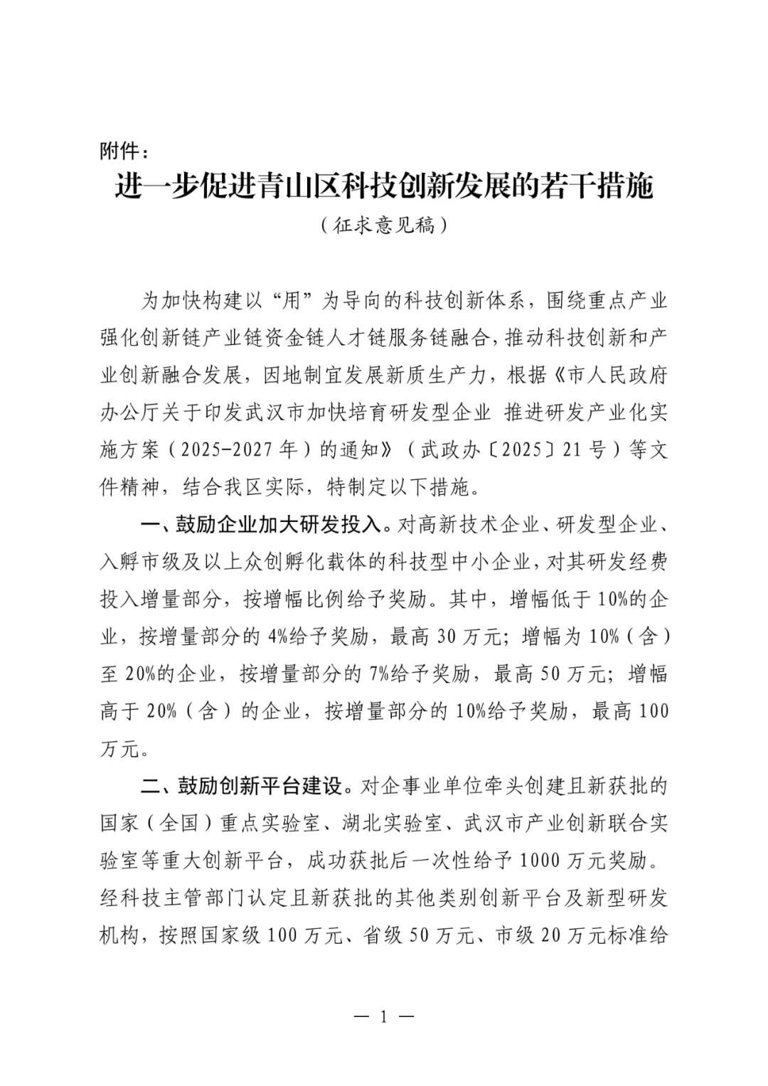 关于《进一步促进青山区科技创新发展的若干措施(征求意见稿)》征求意见的公告