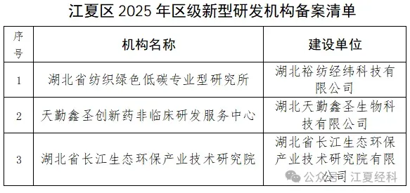 附件:《江夏区2025年区级新型研发机构备案清单》