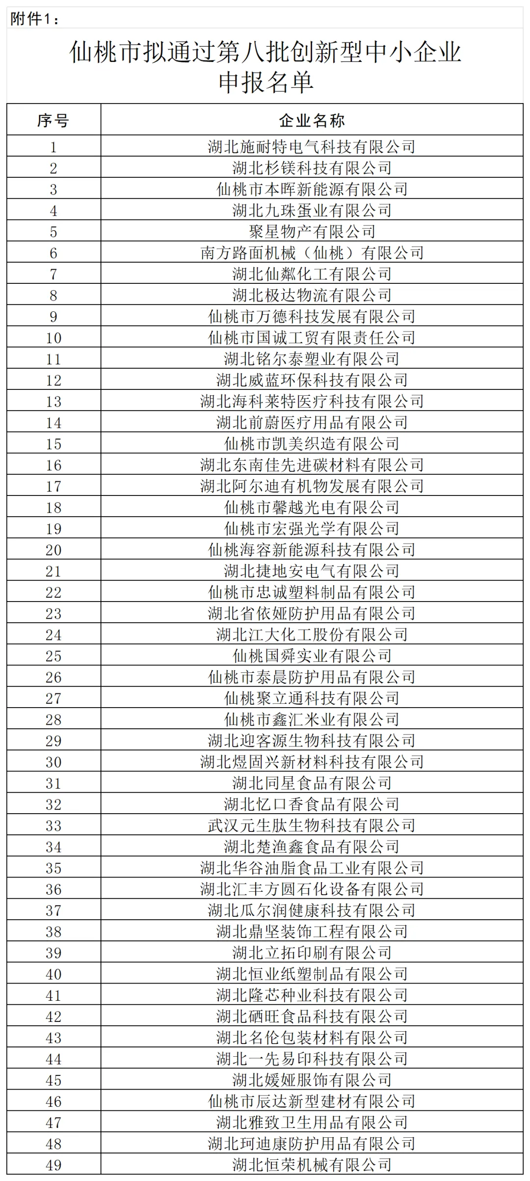 1.仙桃市拟通过第八批创新型中小企业申报名单
