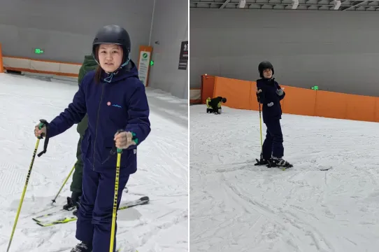 12月10日中午,团建首站在滑雪场正式开启。换上专业雪具后,大家迅速投入体验:滑雪经验丰富的同事主动担当“指导员”,耐心分享平衡控制、转弯刹车等技巧;初次尝试的伙伴相互鼓劲,在一次次练习中突破自我、克服胆怯。雪道上,并肩滑行的身影、摔倒时的及时搀扶、成功后的相互喝彩,让“协作”成为冰雪中最生动的注脚,也让大家在运动中尽情释放压力,全程充满欢声笑语。