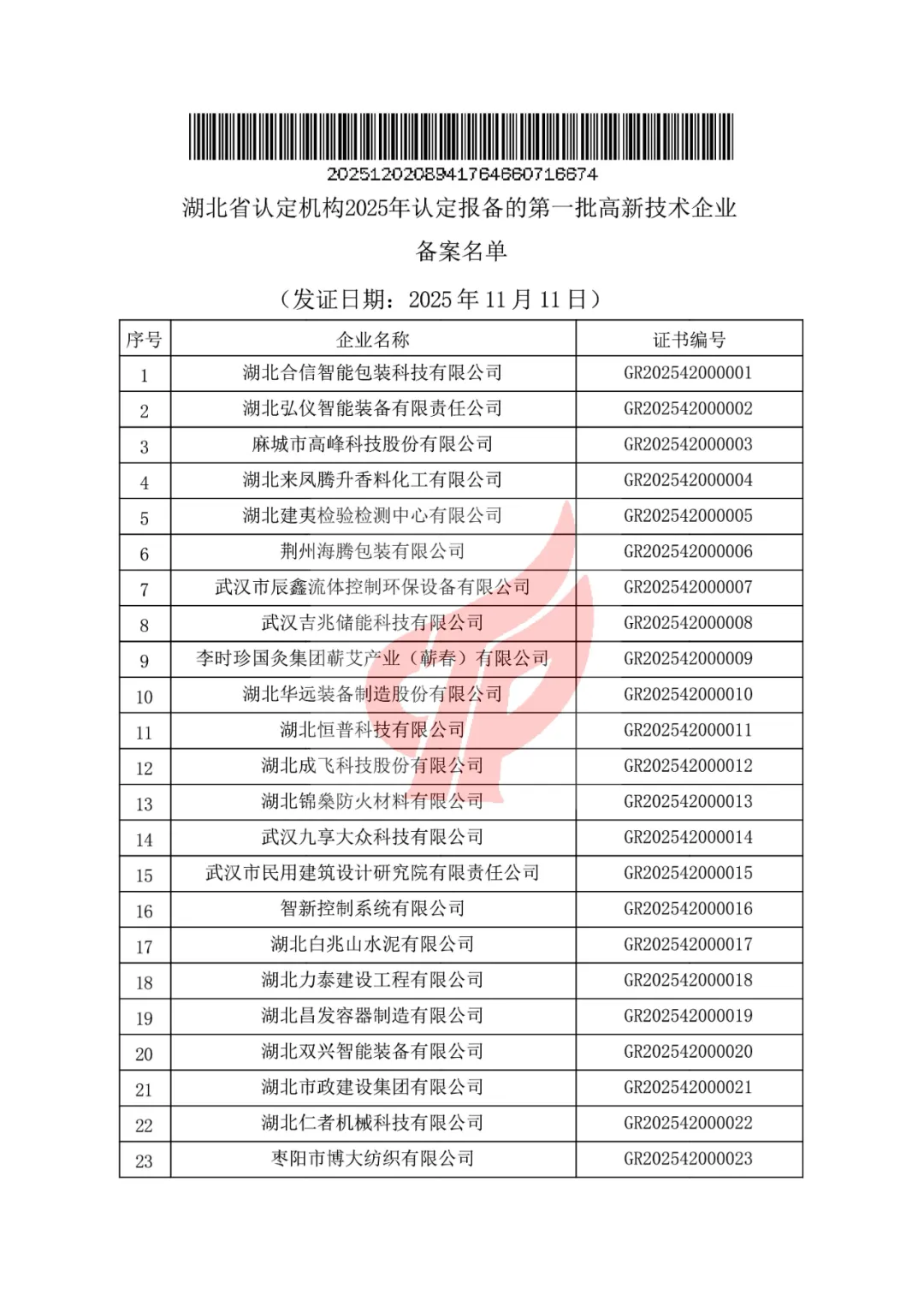 附件:湖北省认定机构2025年认定报备的第一批高新技术企业备案名单