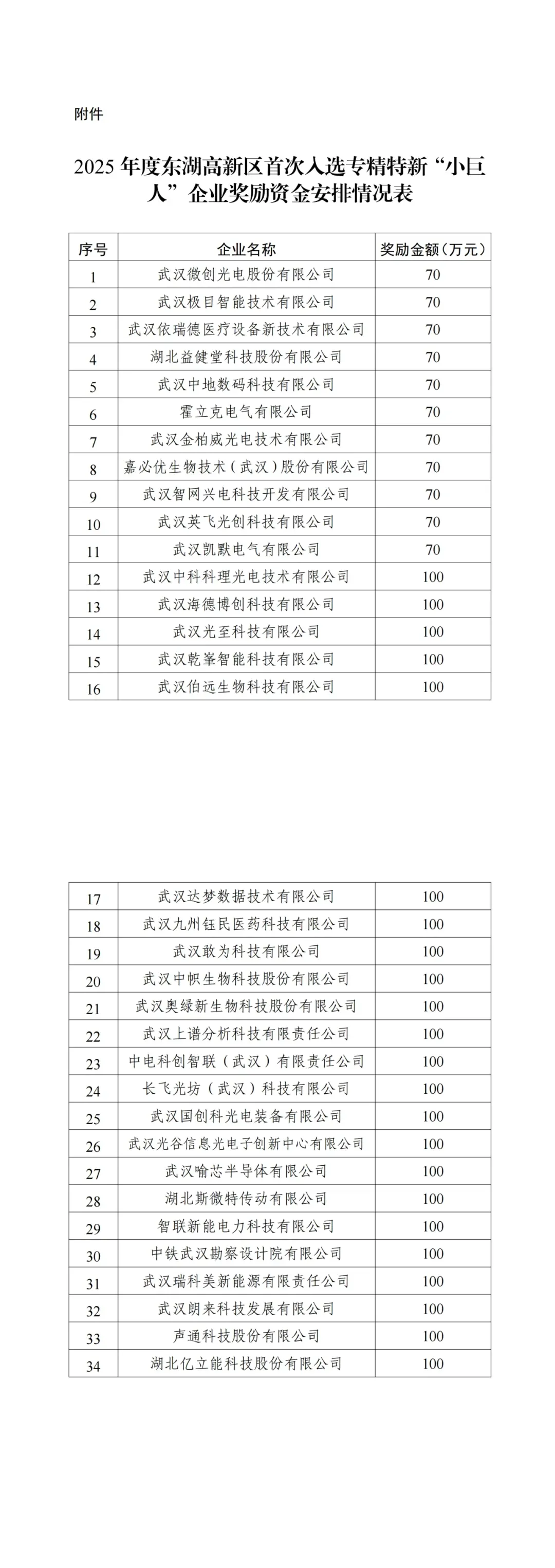 附件:2025年度东湖高新区首次入选专精特新“小巨人”企业奖励资金安排情况表.pdf