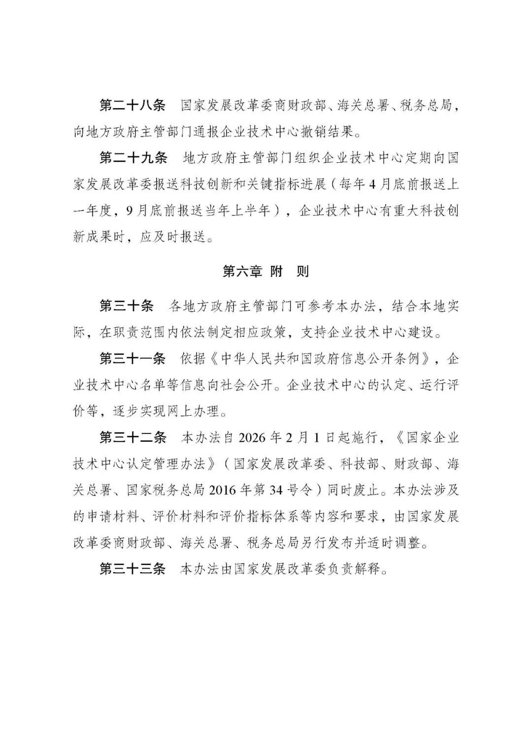 《国家发展改革委企业技术中心认定管理办法》已经2025年12月26日第26次委务会议审议通过,现予公布,自2026年2月1日起施行